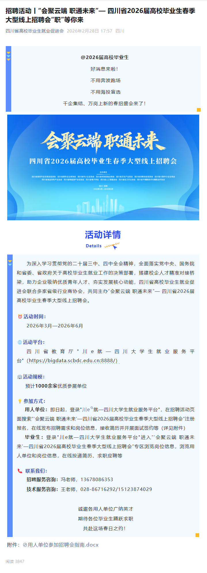 招聘活动丨“会聚云端 职通未来”— 四川省2026届高校毕业生春季大型线上招聘会“职”等你来